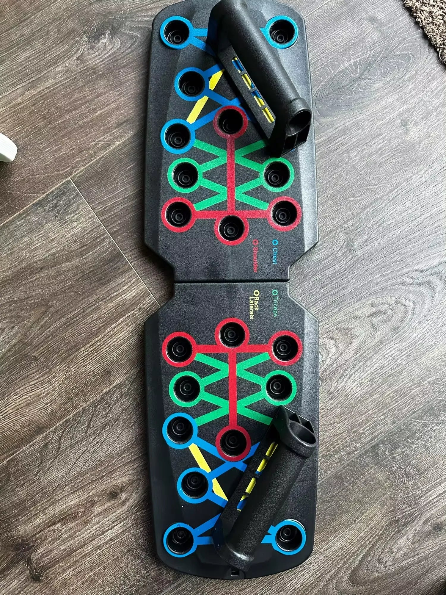 Are you tired of monotonous workout routines that don't deliver results? The Push Up Power Station is your gateway to effective training. With its high-quality materials and innovative design, this foldable exercise board transforms push ups into a comprehensive strength-building experience. Hit all major muscle groups, increase resistance as you improve, and enjoy a stable platform that holds steady even when you push your limits. Begin your journey to enhanced fitness with a tool that's designed to help you succeed.